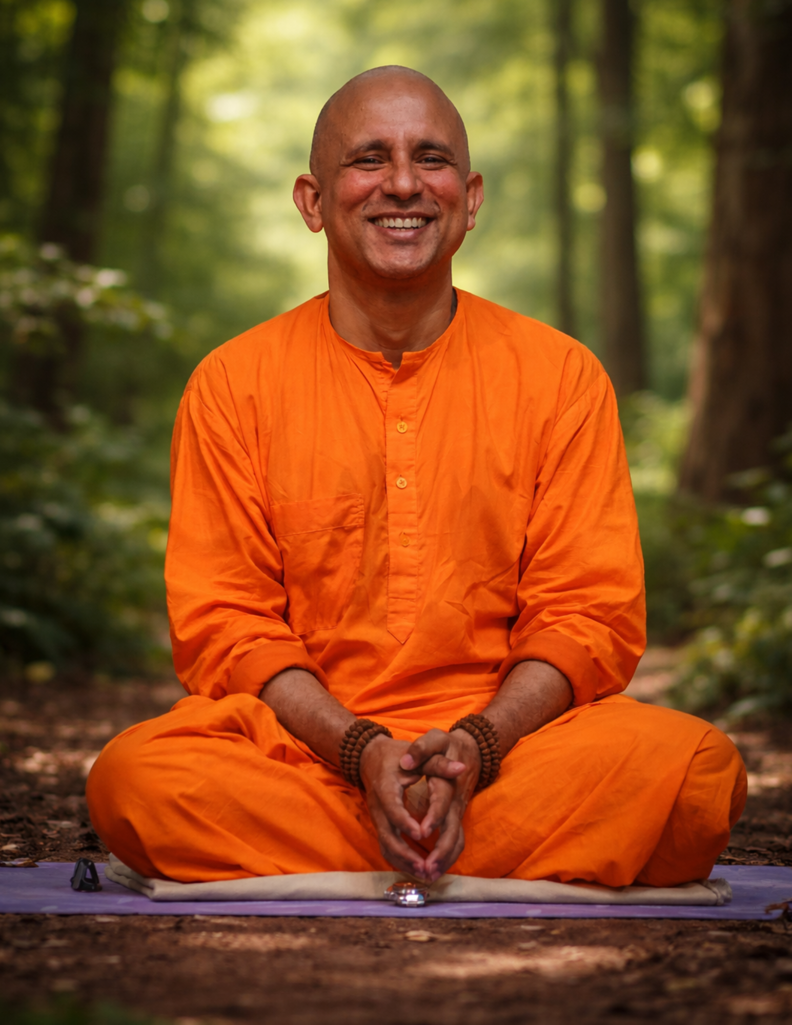 Guided meditation, morning sadhana, forest meditation, yoga, and intimate Q&A with Swami Yatidharmananda — 25+ years in monastic life